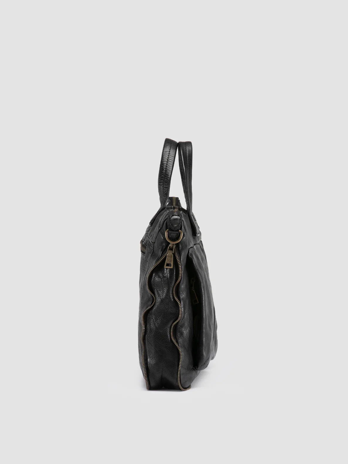 Perfect for carrying documents in style, the Helmet 046 briefcase is handmade in Italy from supple black leather. It features a minimalist, functional design with multiple compartments, top handles and a detachable strap.