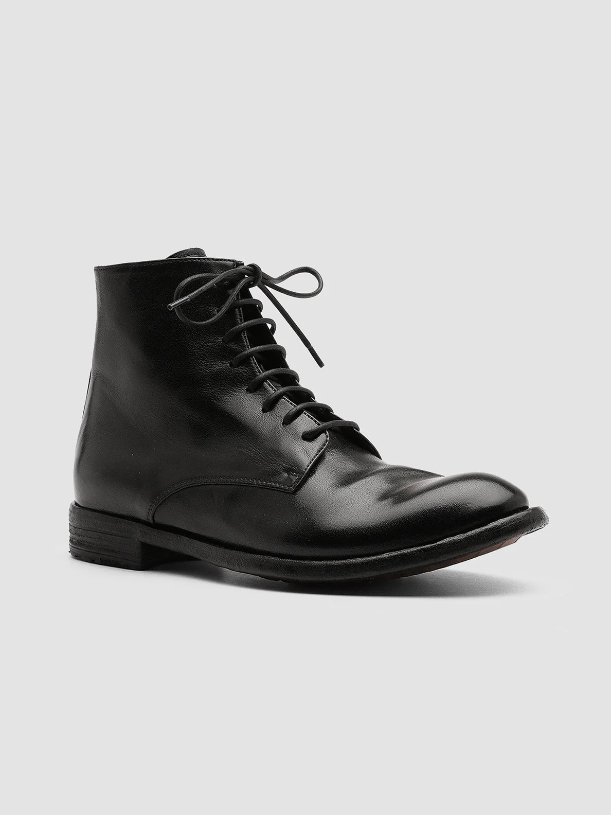 Flawless craftsmanship and comfortable easy-going style blend perfectly in our Lexikon ankle boots in black fine leather. They have a rounded almond toe design thin waxed laces silver-tone metal back zip fastening and a durable leather sole with a low stacked heel and tread rubber inserts.
