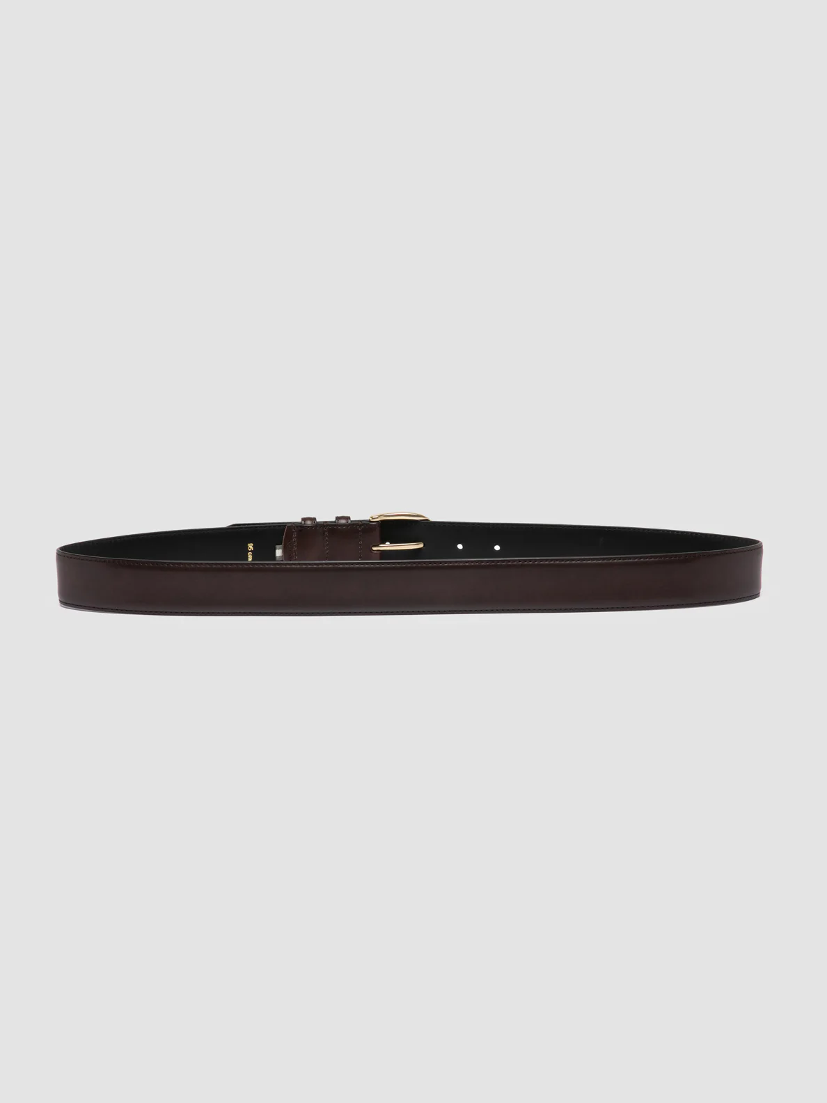 The OC Strip 105 belt is handcrafted from smooth brown leather, with a sleek profile complemented by a gold-tone metal buckle, for a timeless elegance. Matching leather loops and tonal stitching complete the design. CODE: OC STRIP/105 AERO SPALLA PIUMA NAPPA COFFEE