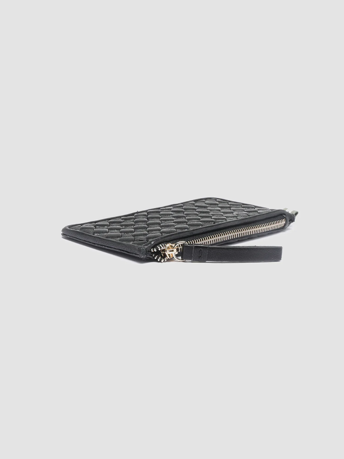 Made entirely by hand by our skilled craftsmen our Juliet card holder stands out thanks to its woven design in fine black leather. It features a gold-tone metal zip-fastened compartment six card slots logo lettering printed at front and our signature grosgrain loop tab at the side.