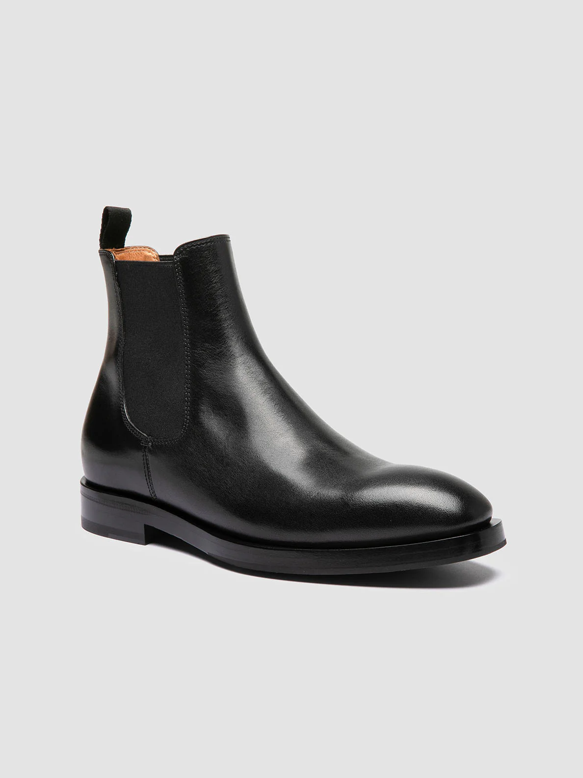 Handcrafted in Italy, the Ortega 003 Chelsea boots feature a sleek black leather upper with a semi-square toe for a refined look. Elastic side panels ensure a snug fit, while the leather and rubber-injected sole offers durability. CODE: ORTEGA/003 SPALLA PIUMA NAPPA NERO